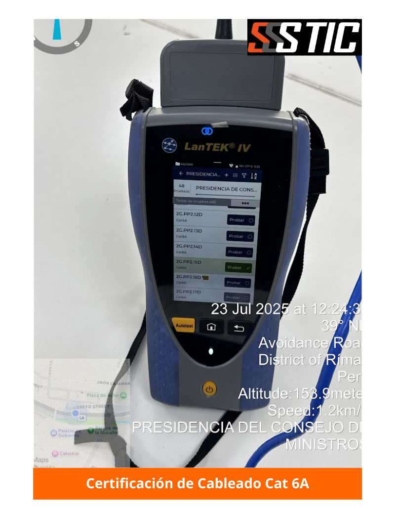 En SSSTIC ofrecemos certificación profesional de puntos de red en categorías Cat 5, Cat 6, Cat 6A y Cat 8, utilizando equipos de última generación como Trend Networks LanTEK IV y Fluke Networks.