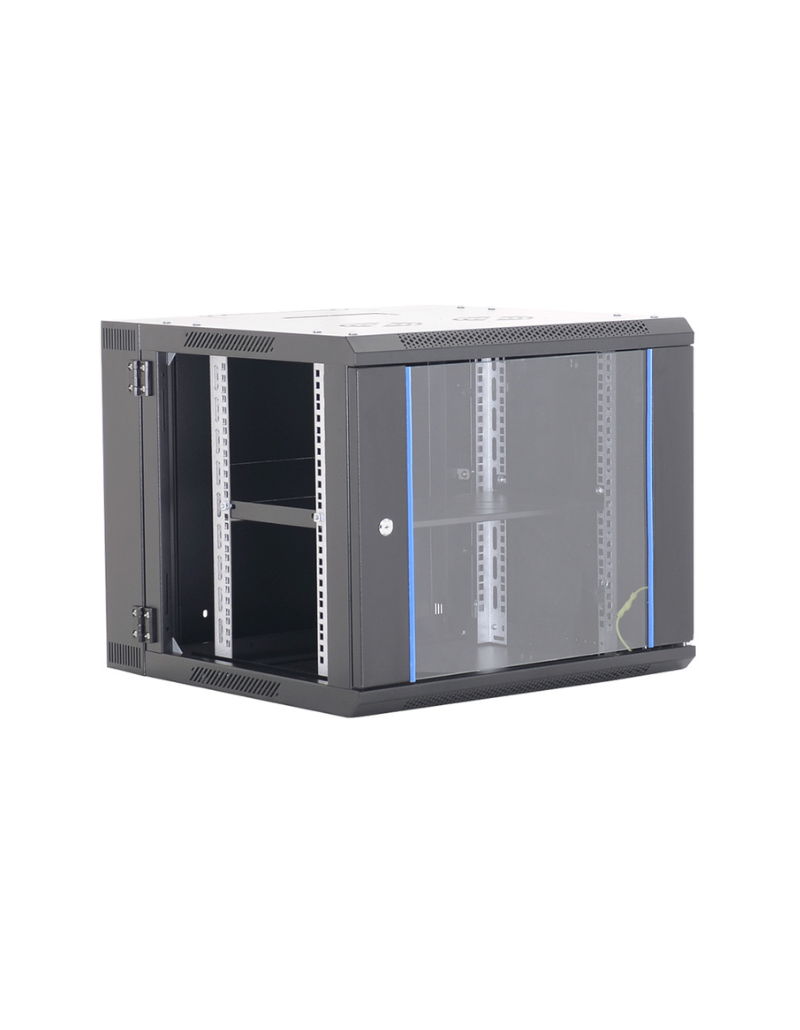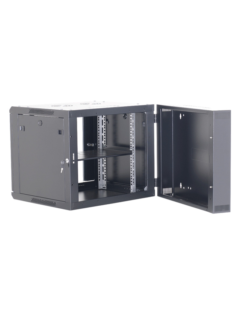 Gabinete de pared 15RU 769x600x450+100mm abatible con puerta de vidrio de seguridad, ideal para equipos de red, telecomunicaciones y control en entornos críticos.