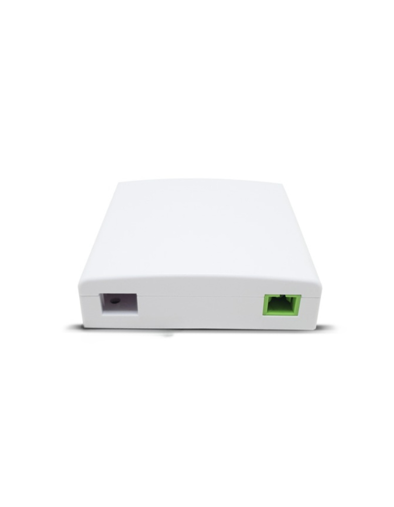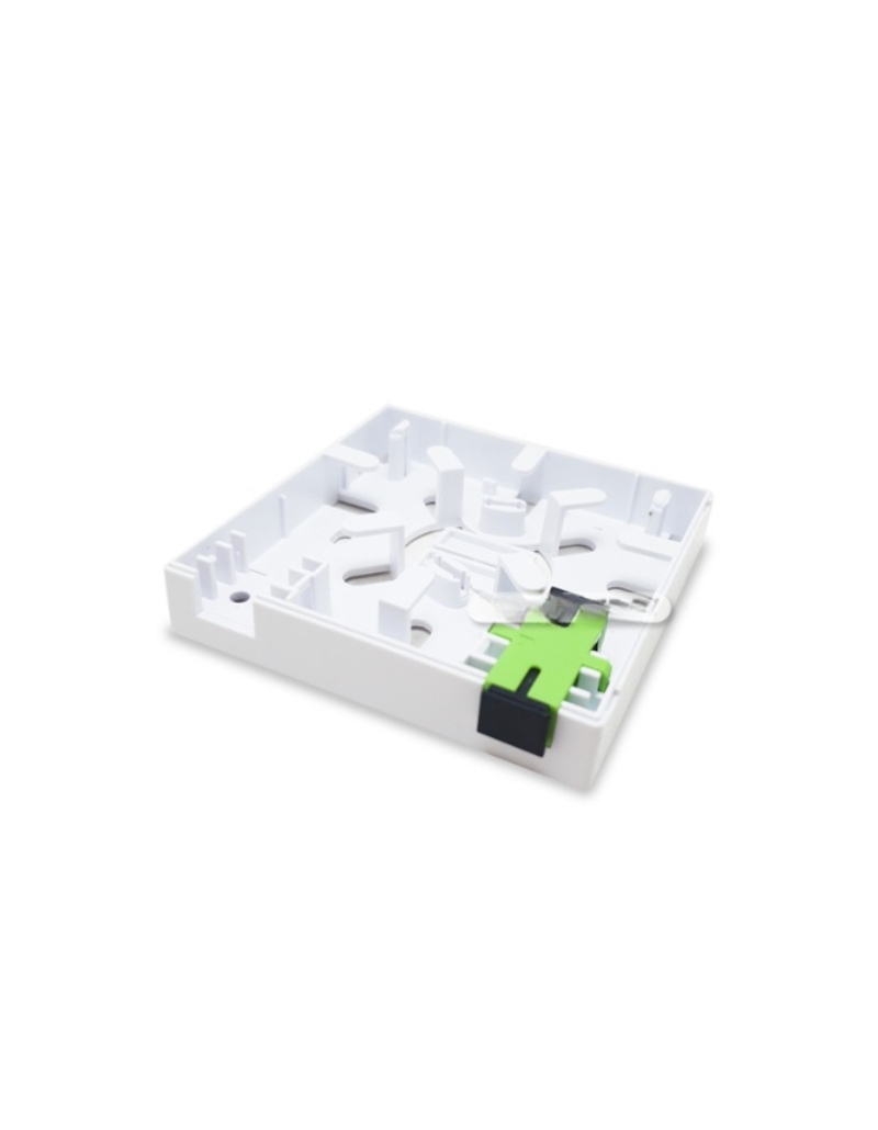 Roseta terminal de fibra óptica con 1 enfrentador SC/APC. Compacta, segura y fácil de instalar en redes FTTH, garantizando conexiones estables y confiables.