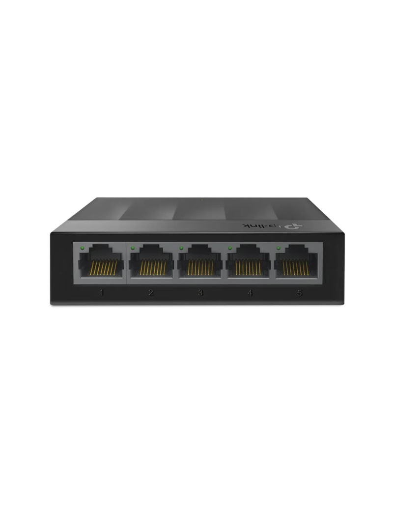 Switch TP-Link LS1005G de 5 puertos Gigabit, carcasa plástica, compacto, silencioso y eficiente. Ideal para oficinas y redes domésticas.